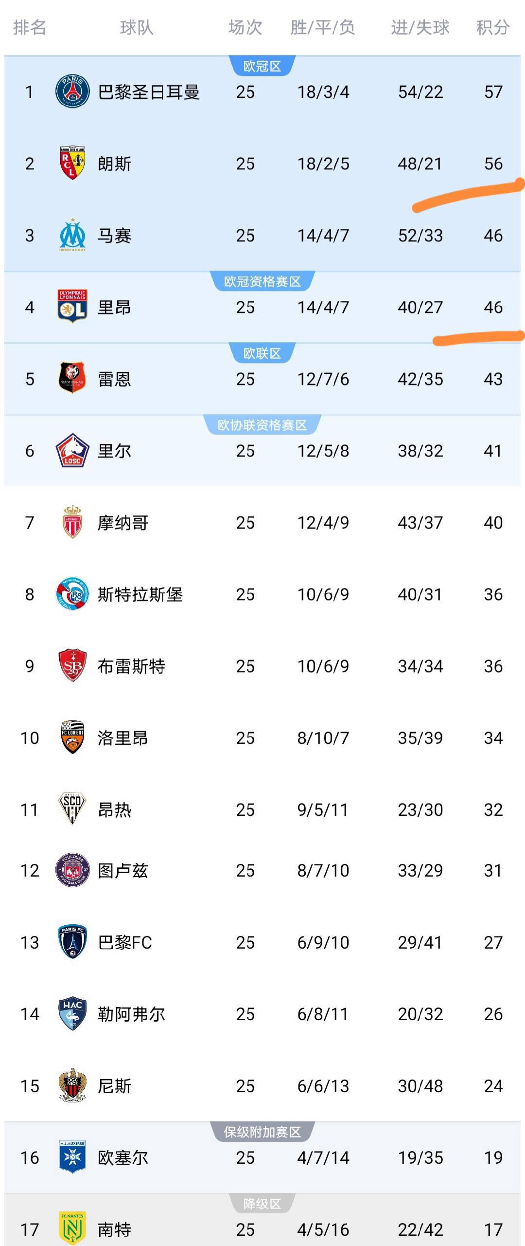 竞争中本轮,-0完胜梅斯朗斯主场以3,现无遗气力展。场得胜依赖这,升至56分朗斯积分提,榜第二位稳居积分,领头羊仅差1隔离绝积分榜首的,激烈且眼花缭乱冠军篡夺愈发。利的梅斯而同轮失,有13分积分仅,分榜末尾仍处于积,区达11分且掉队平安,度极大保级难。